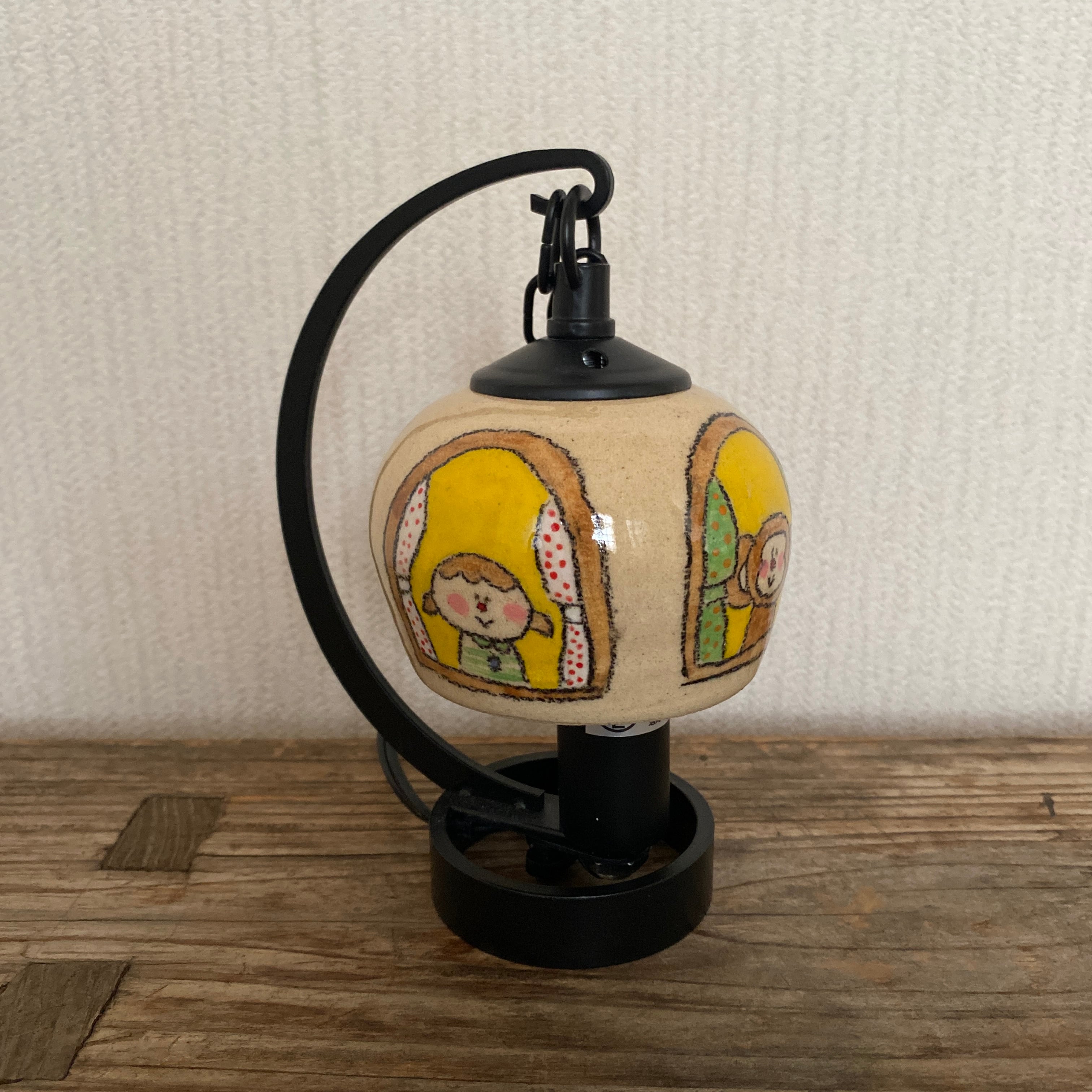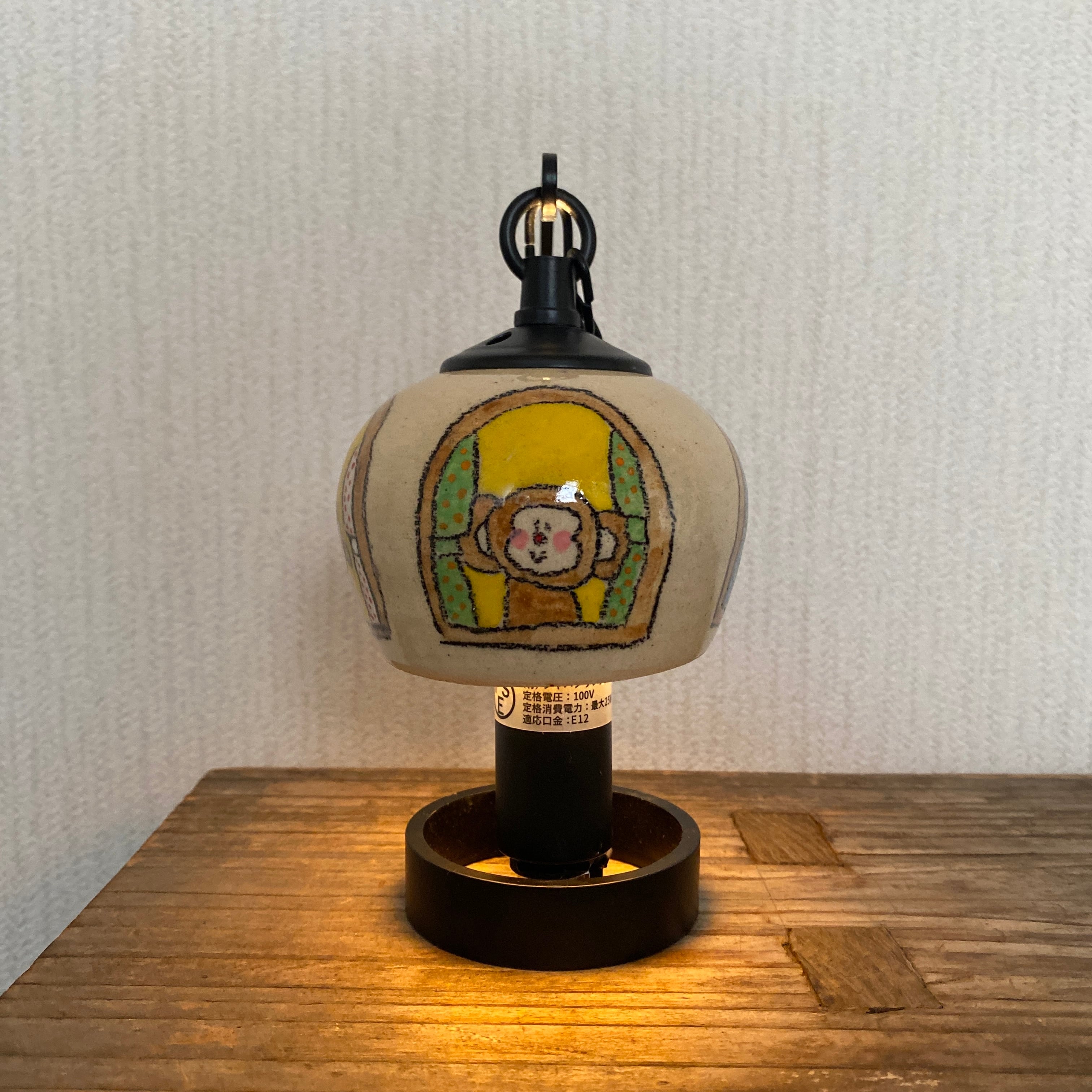 心地よい空間を演出する「テーブルライト❸」です!陶芸作家こさえるが手掛けたこの魅力的な陶器製ランプシェードは、ご覧のようにほんのりとした明るさで可愛らしく優しい雰囲気をもたらし、心を和ませること間違いなしです。