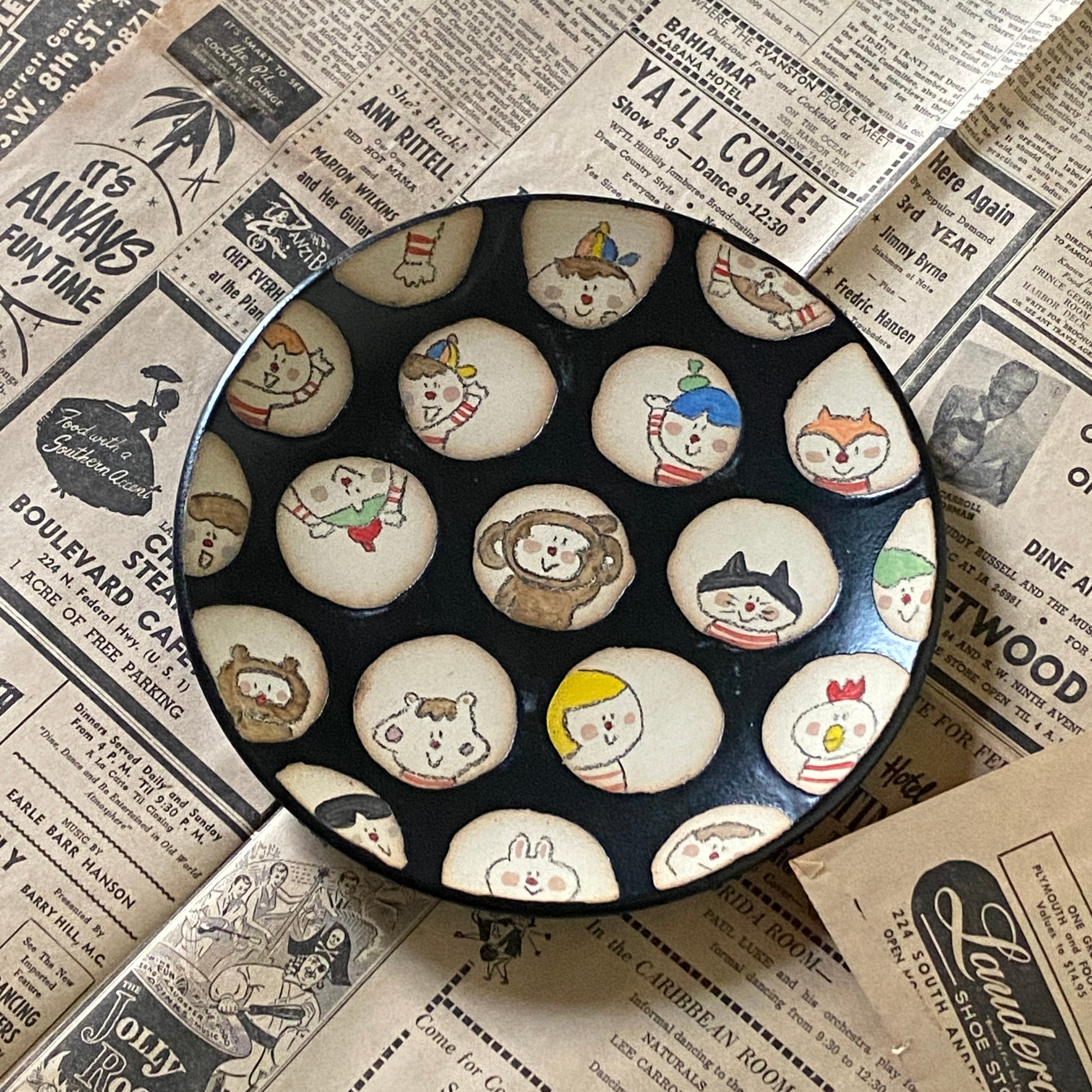 心温まる食卓を演出する「あつまれどうぶつ皿 / 黒」です!陶芸作家こさえるが手掛けたこの魅力的なお皿は、丸い窓から覗く可愛らしいどうぶつたちが特徴で、食事の時間がより楽しくなること間違いなしです。